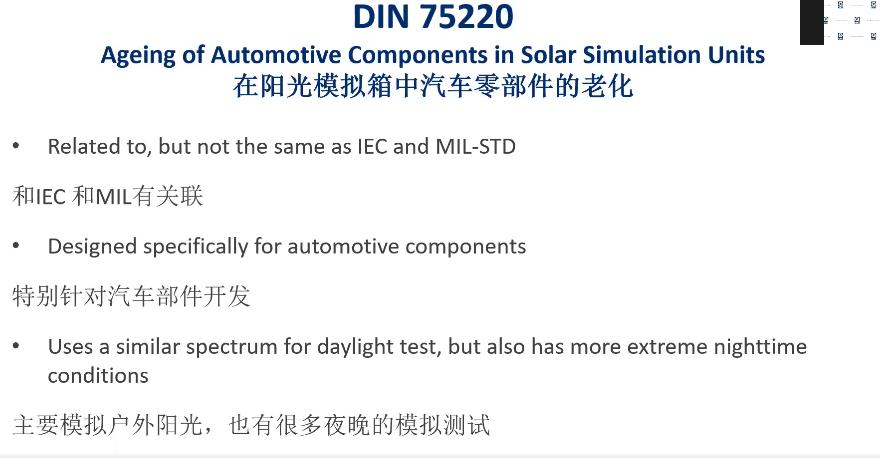 本次研討會(huì)將詳細(xì)解讀為您詳細(xì)的介紹國(guó)際電工委員會(huì)IEC 采用的測(cè)試電子產(chǎn)品的常見(jiàn)方法,特別是IEC60068-2-5太陽(yáng)輻射測(cè)試和光老化測(cè)試標(biāo)準(zhǔn)。