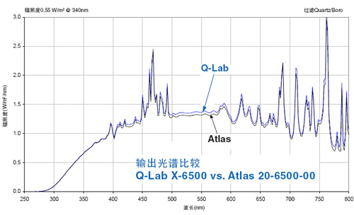 X-12000氙燈燈管的輸出光譜可保證與Atlas 20-3053-00氙燈燈管的輸出光譜一致。