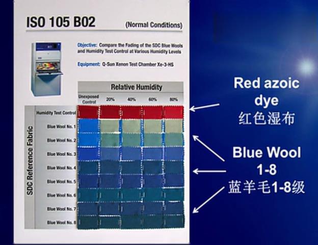 ISO:ISO 105-B02 EN DIN、ISO 105-B04 (EN) (DIN)、ISO 105-B06 EN DIN、ISO 105-B07 EN DIN、ISO 105-B10 EN DIN、ISO 11341 EN DIN、ISO 12040、ISO 29664、ISO 4892-1 (EN) (DIN)、ISO 4892-2 (EN) (DIN)、ISO 3865、ISO 4892-3 EN DIN