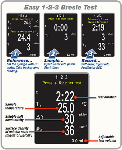 簡單的1-2-3測試界面引導用戶使用布雷斯勒(Bresle)測試方法;