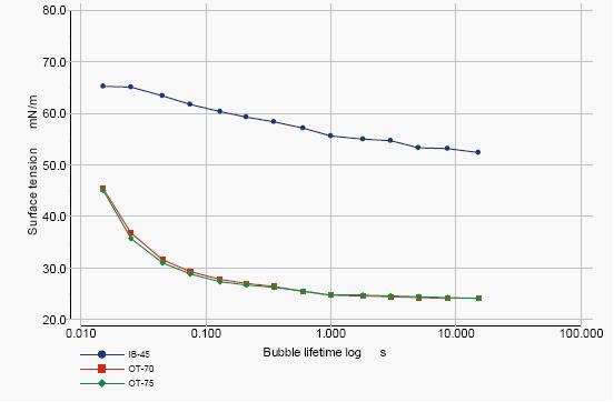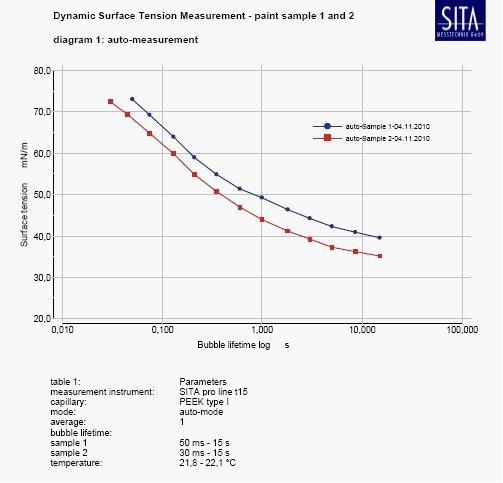 使用德國SITA 動態(tài)表面張力儀,直接得出表面活性劑的動態(tài)表面張力數(shù)據(jù):