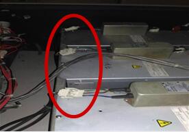 1、 首先出現(xiàn)這個故障后,如果還出現(xiàn)M2 LAMP DOOR IS OPEN的故障信息,那我們就跳到第4步;如果沒有,我們應該先檢查燈盒的連接線是否已經接好(如右圖1所示),整流器的電源線是否接好(如下圖2所示)
