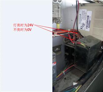 3、 當繼電器燈亮,但燈管仍沒有點亮,那我們可以測試左圖中的繼電器的電壓是否為24V,如果是則進入下一步,不是則表面這個繼電器損壞。