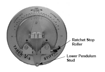 鐘擺在10-100挺度單位且沒有加砝碼的情況下被校準的。增加砝碼可以改變范圍。參見Set Up Chart表格的Range Weight范圍砝碼可知應加砝碼。測量范圍的砝碼裝在鐘擺下端的柱栓上(圖6)。另外,在選擇測量范圍的時候,屏幕上也會顯示所需的砝碼。