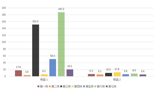 以RFU的最高值作為最終結(jié)果,作出對比圖表,即用樣品最臟的點代表整個樣品的清潔度。