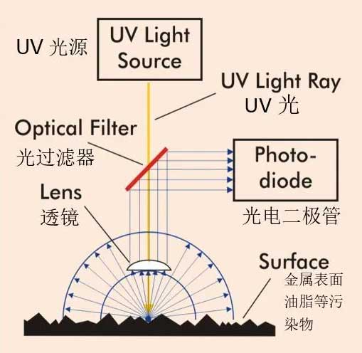 SITA表面清潔度儀采用共焦方法,由光源向基材發(fā)射較佳波長的UV光,感應(yīng)器馬上探測反射的熒光強(qiáng)度。