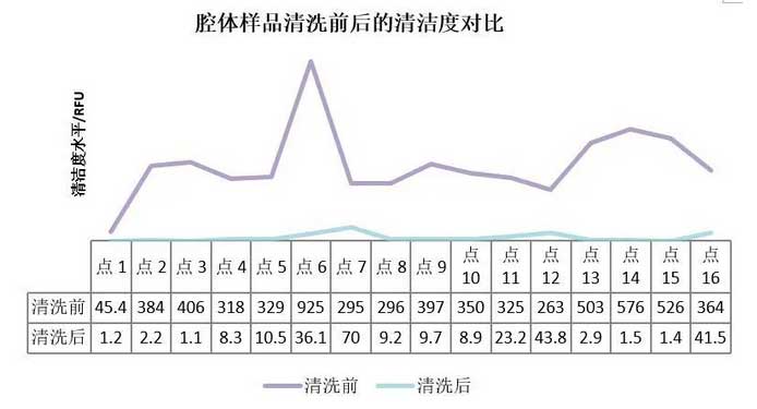1. 清洗后比清洗前的RFU值要低,與實(shí)際情況相符;